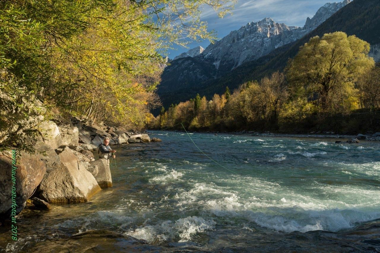 La grande Drau est une rivière alpine impressionnante, dotée d’un courant soutenu et d’une largeur pouvant aller jusqu’à 40 mètres. D’énormes blocs de roche et des épis cassent la force du courant pour former des poches et des retours de courant offrant un habitat parfait pour les nombreux salmonidés. Des prises d’ombres de plus de 50 centimètres sont possibles sur nos deux parcours qui impliquent un sens de l’eau et un niveau technique élevé. Hormis l’impressionnant cheptel d’ombres, le pêcheur à la mouche y trouve de nombreuses truites arcs trophées et farios. Une prise d’un huchon à la mouche n’est pas impossible.Mais il faudra beaucoup de chance pour sortir vainqueur de la bagarre avec un de ces géants. La grande Drau n’est pas praticable à la pêche entre fin mai et fin août compte tenu de la fonte des glaciers. En septembre, pour le début de la saison, le niveau de l’eau de la grande Drau baisse et les blocs de roche et les bancs de graviers ressurgissent à la surface. L’eau redevient claire et habille la rivière d’une robe émeraude.