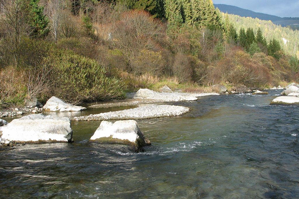 La petite Drau prend sa source en Italie. Puis elle parcourt la vallée « Pustertal » jusqu’à son confluent avec la Isel à Lienz. Ses eaux ne sont pas affectées par la fonte de glaciers et nos parcours restent ainsi accessibles en permanence d’avril à novembre. Sa largeur moyenne est de 15 mètres et ses eaux sont rapides. Des poches à l’arrière des grosses pierres et des blocs de roches forment des niches où les ombres et les truites sont à l’affût de quelque nourriture en dérive. La taille moyenne des poissons, de 30 centimètres, voire jusqu’à 50 centimètres pour les ombres et les arcs, ont fait la réputation de nos deux parcours sur cette rivière charmante. En fin de saison, quand les eaux sont basses et cristallines, l’approche furtive des salmonidés, afin de les faire monter sur des petites mouches sèches, constitue un authentique plaisir.